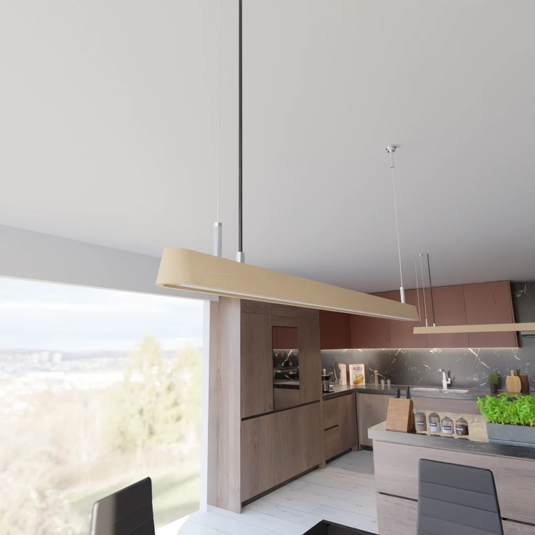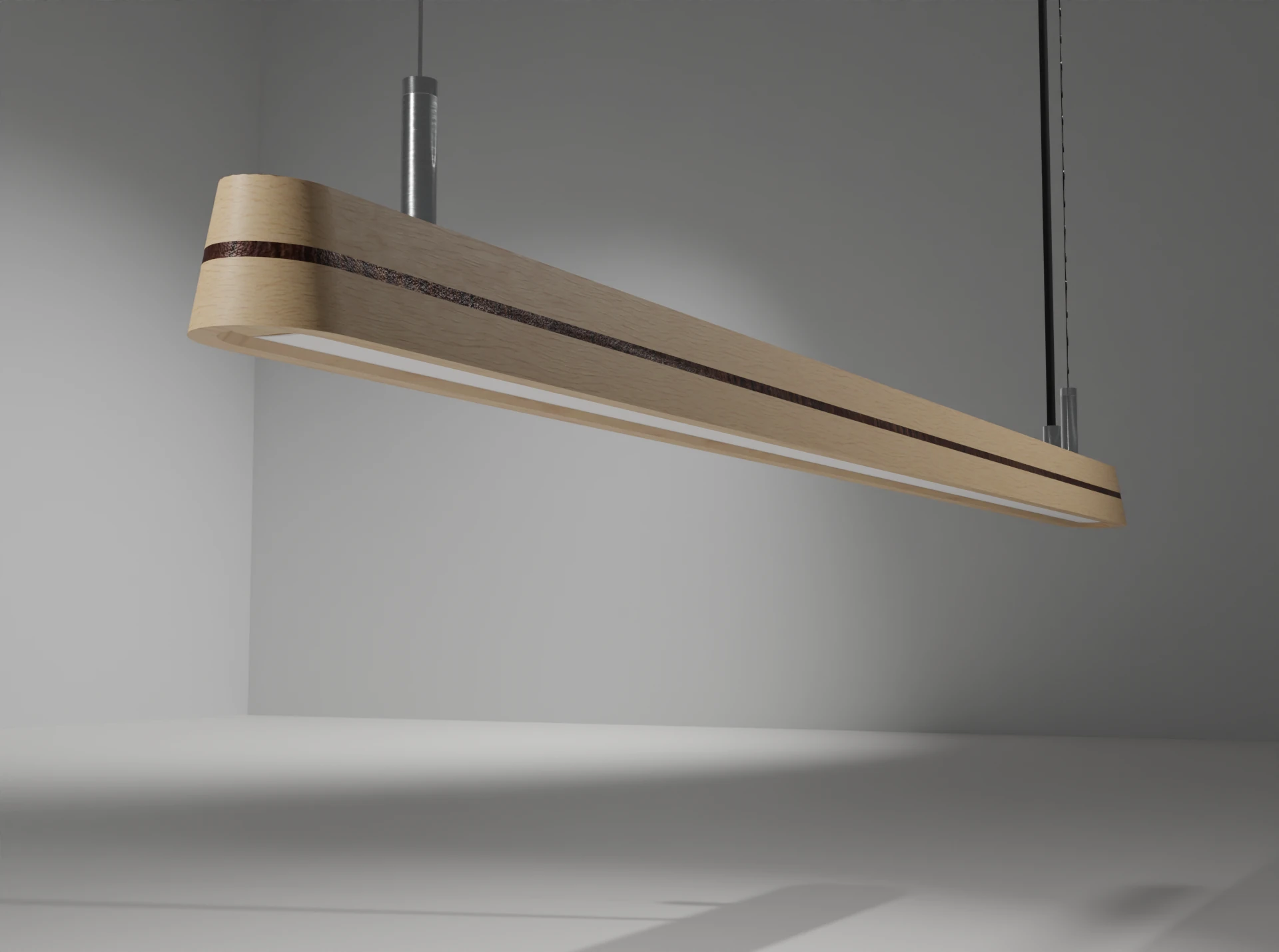 This design takes inspiration from classic tapered drum lampshades, reimagined with a sleek, elongated form and softly rounded ends that add a modern touch. The light source is thoughtfully positioned within a slightly recessed cavity, seamlessly joined to the outer surface by a refined 45-degree chamfer, creating a subtle play of light and shadow.