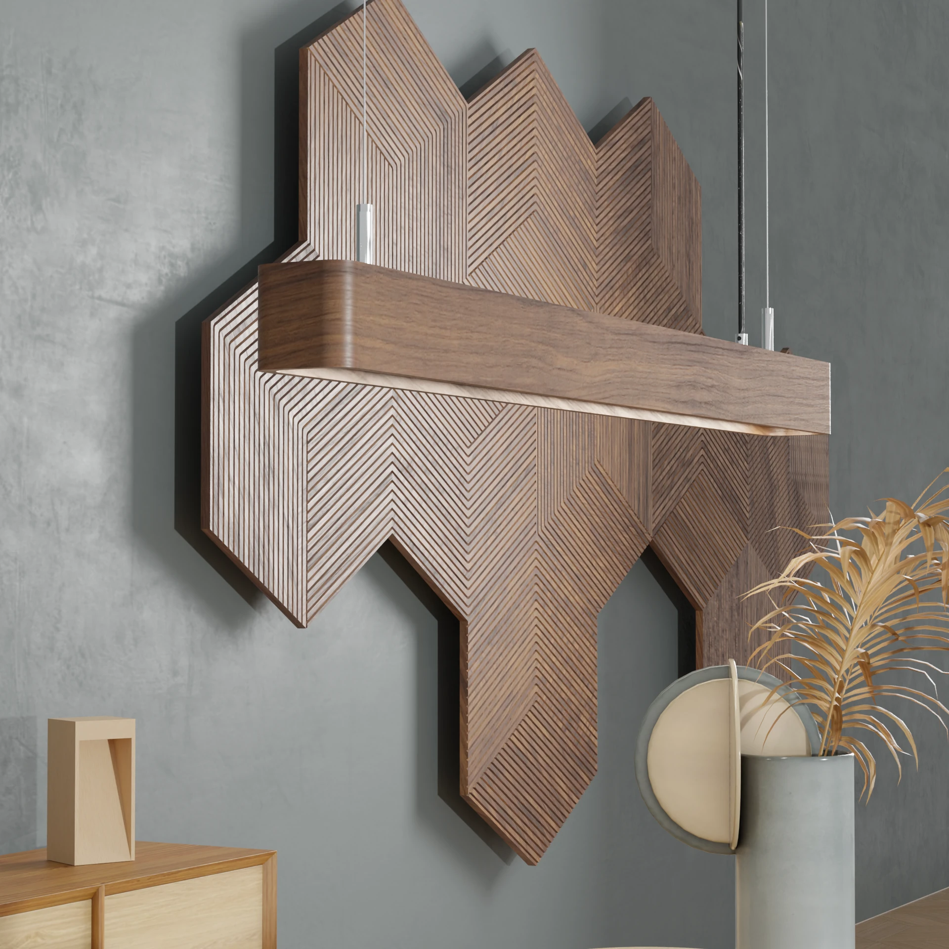 Its bold form, combined with the substantial weight and density of the material, creates a powerful visual impact. This effect is further enhanced by the generous use of solid wood, which not only adds to the tactile richness but also reinforces the sense of craftsmanship and durability. The fixture is available in a variety of wood species and finishes, allowing for customization that suits a wide range of interior styles — from rustic and industrial to Scandinavian and modern minimalist.