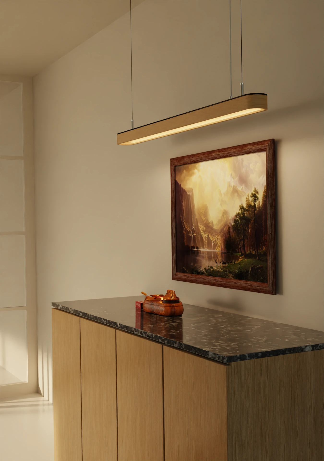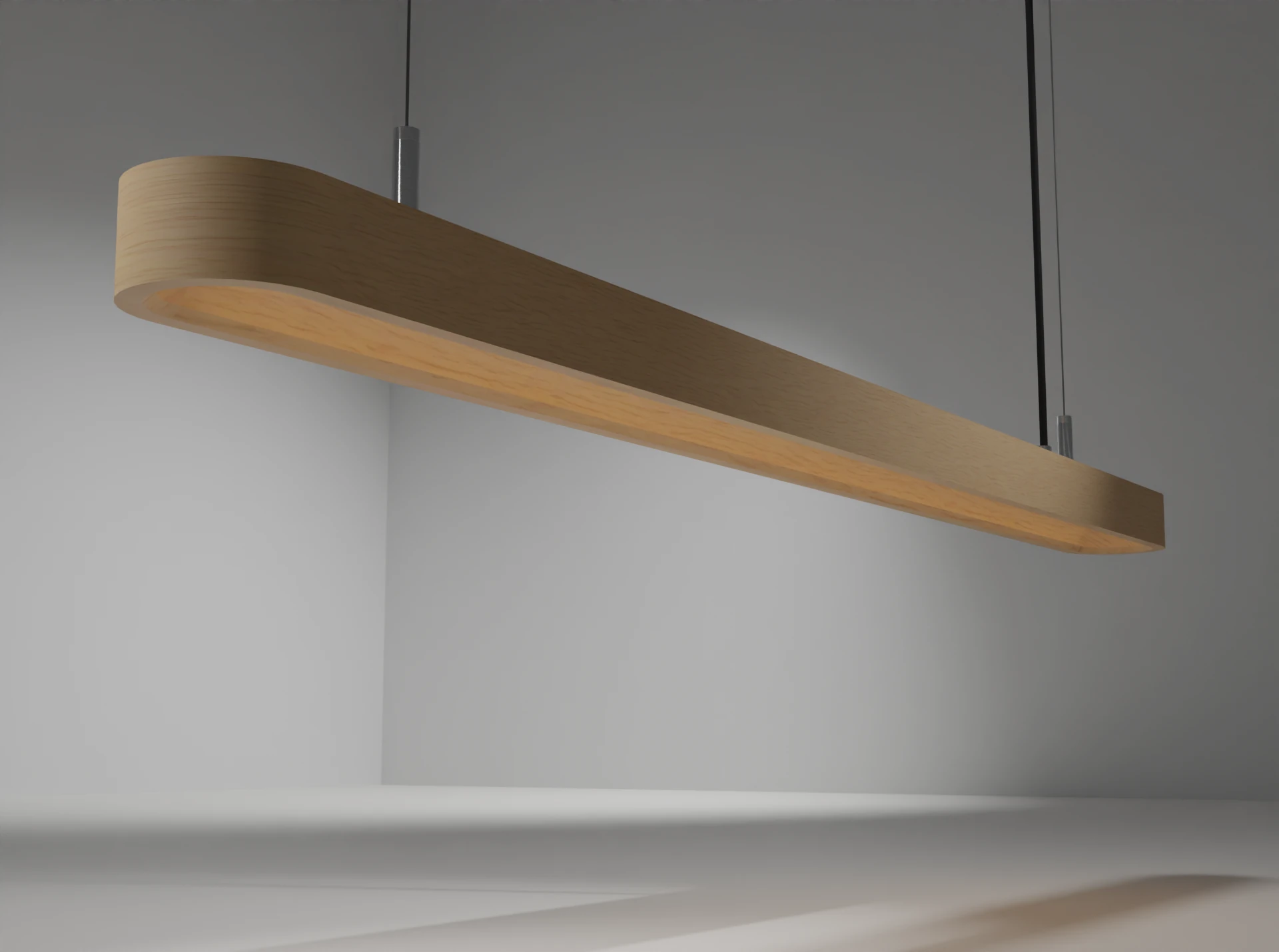 Selva is the purest and most essential expression of this collection. Defined by a clean, ribbon-like geometry, it features a smooth, fluid profile with no sharp edges or visual interruptions. The body, entirely made of solid wood, houses a finely integrated linear LED source positioned within a sculpted, semicircular groove. This element diffuses a soft, directional light, accentuated by the gently curved inner surfaces that reflect and guide the beam downward.