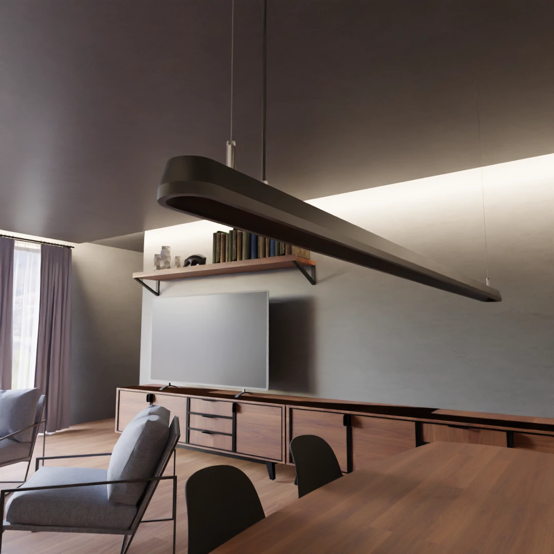 Its internal cavity—sculpted and generous—hosts a linear LED source nestled in a semicircular channel. This arrangement produces a smooth, expansive glow, ideal for both task and ambient lighting. The smooth internal-to-external beveling adds cohesion and a tactile quality that elevates the overall design. Vela is suited to a wide range of settings: from contemporary homes to boutique hotels, lounges, or creative offices where design meets atmosphere.